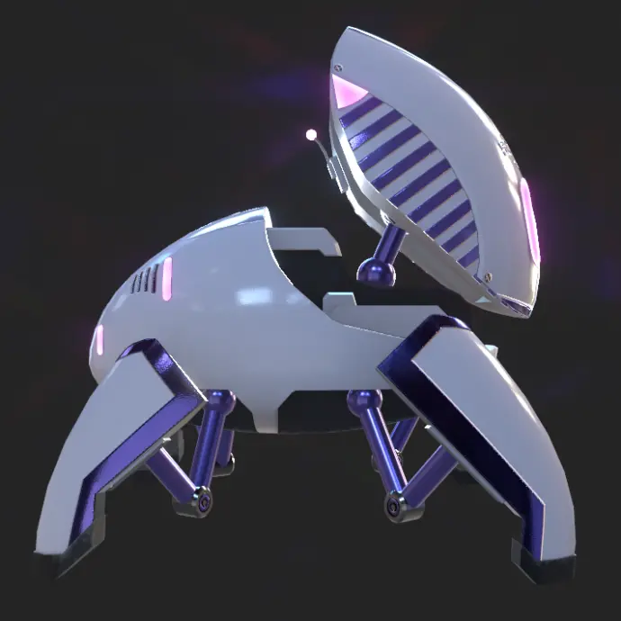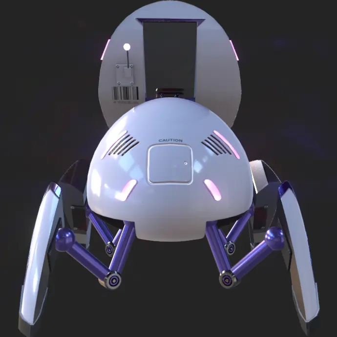 Using Substance Painter for material creation, I implemented a series of custom textures and materials for each model, considering factors such as interaction with the environment, use, and the robots' functionality. The material design choices were made to emphasize the differences in the two bots' roles while simultaneously maintaining common stylistic elements and color palettes to reinforce the idea of affinity between the characters.